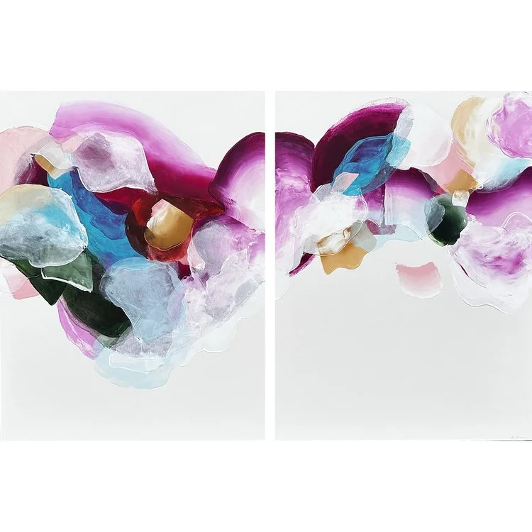 These fresh new paintings are cascading with dynamic, expressive marks! The negative space in these works helps create a deliberate composition, and one that your eye travels along. While they are energetic, they also emit a feeling of serenity and peacefulness.